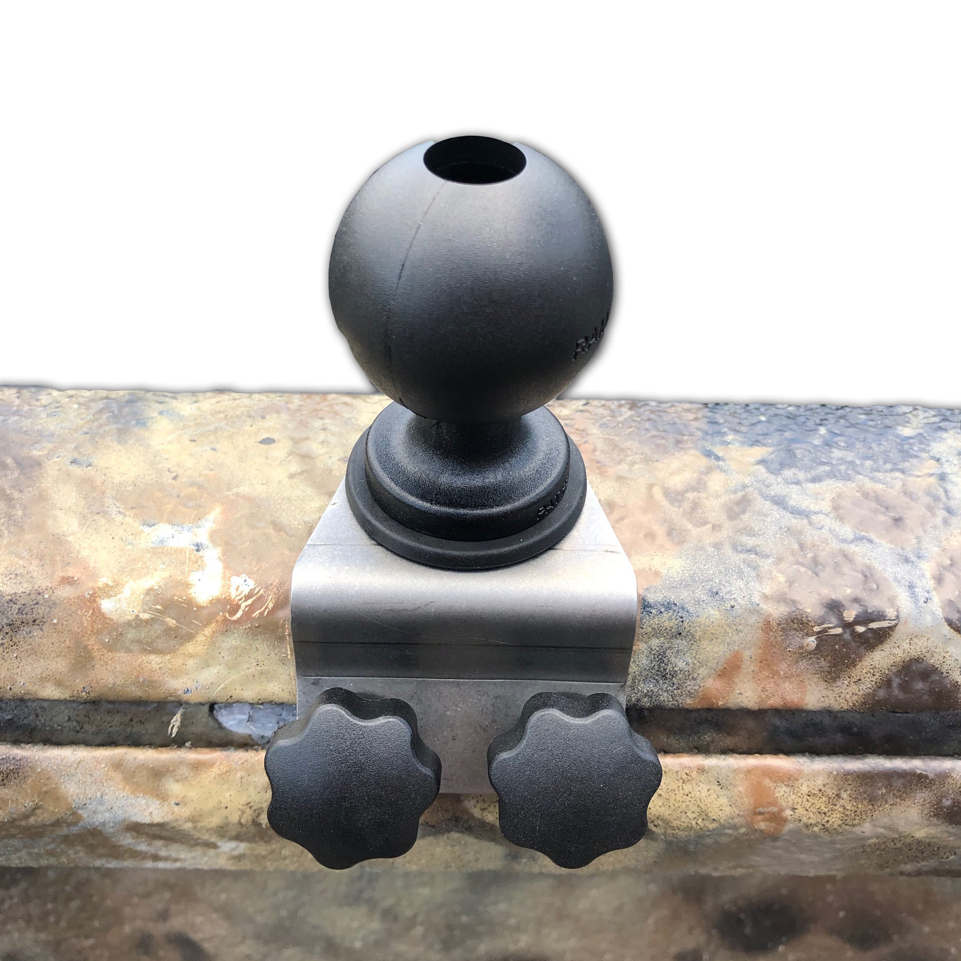 The RAM Track Ball is made up of a C size 1.5" rubber ball molded to a high strength composite base, a rubber friction washer. Attaches to Excel Boat's T Rail with the Ball Mount Bracket, T Bolts and Knobs.